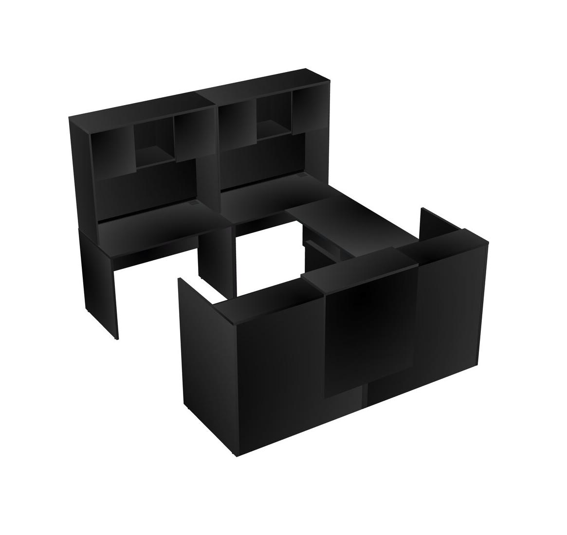Bureau D'accueil Modulaire Partagé En U Avec Comptoir Flottant + Huche + Tiroirs Mobiles En Bois