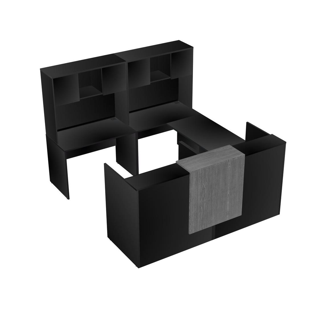Bureau D'accueil Modulaire Partagé En U Avec Comptoir Flottant + Huche + Tiroirs Mobiles En Bois