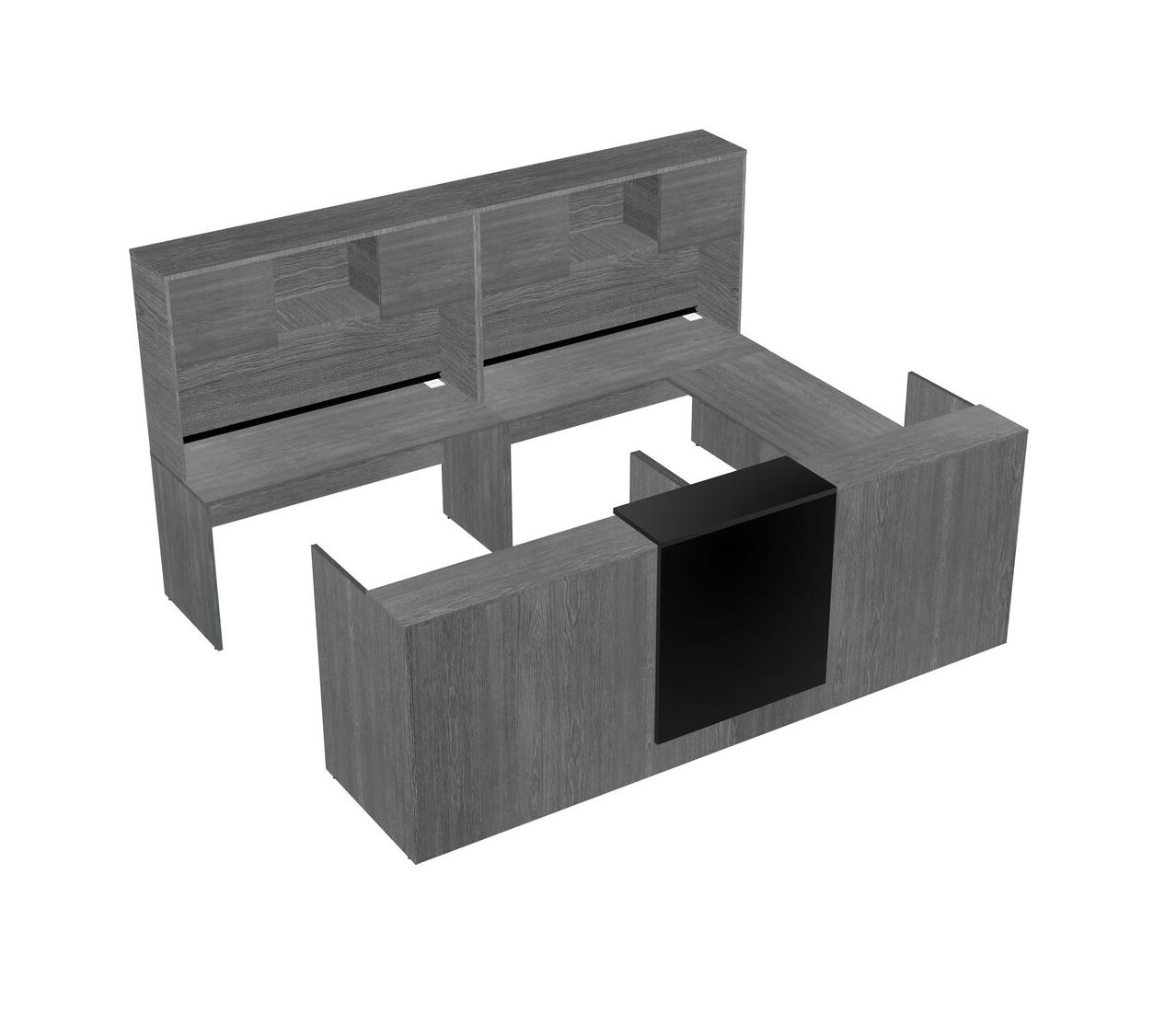 Bureau D'accueil Modulaire Partagé En U à Un Côté Avec Comptoir Flottant + Huche