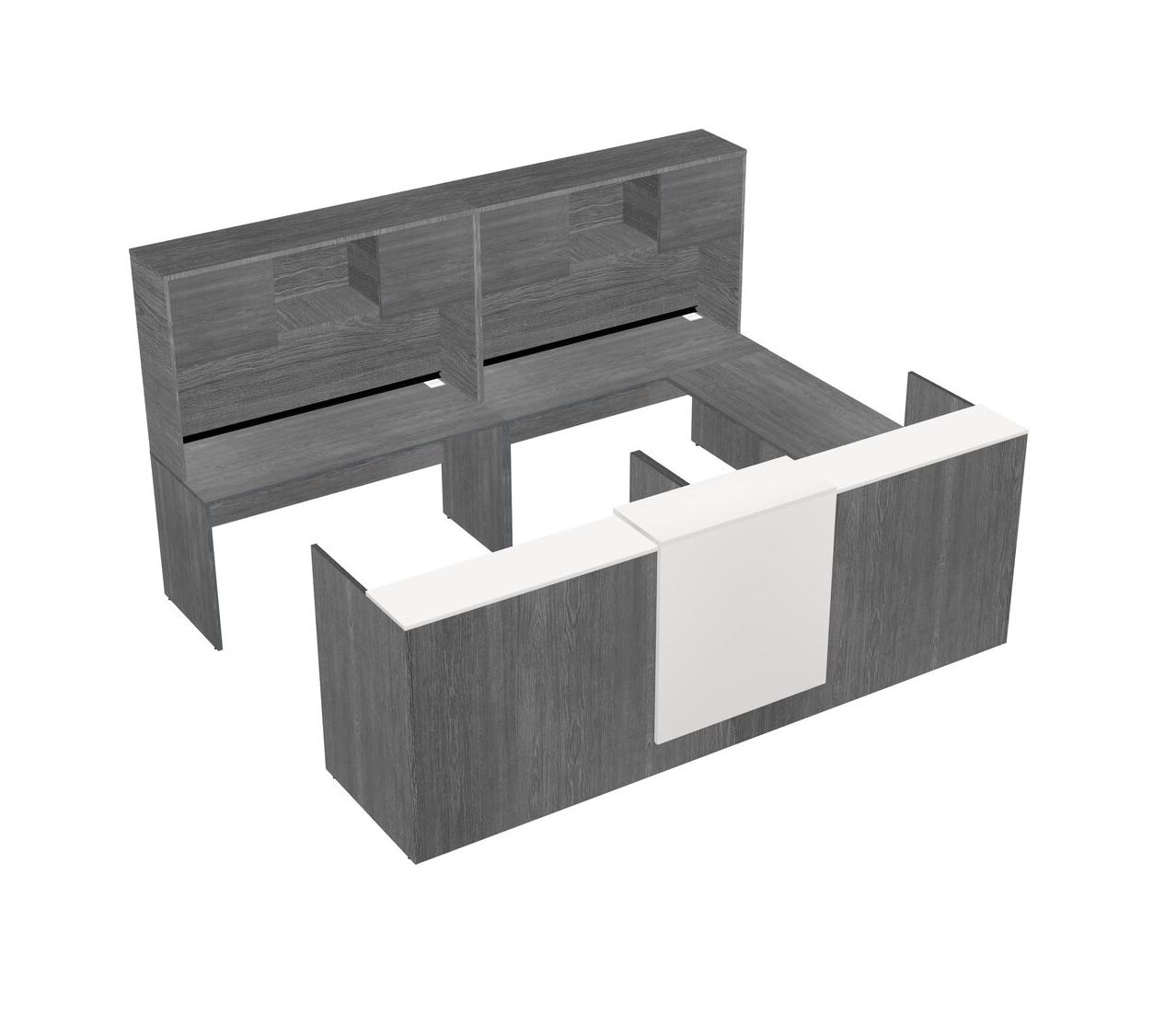 Bureau D'accueil Modulaire Partagé En U à Un Côté Avec Comptoir Flottant + Huche