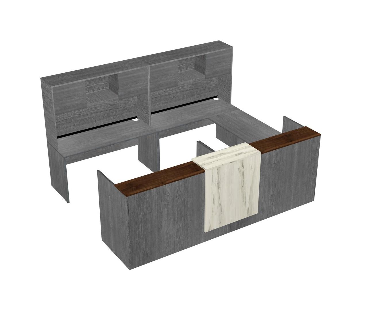 Bureau D'accueil Modulaire Partagé En U à Un Côté Avec Comptoir Flottant + Huche