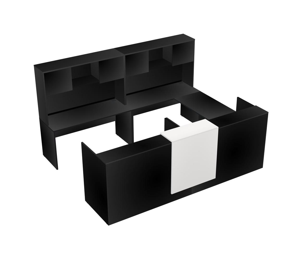 Bureau D'accueil Modulaire Partagé En U à Un Côté Avec Comptoir Flottant + Huche