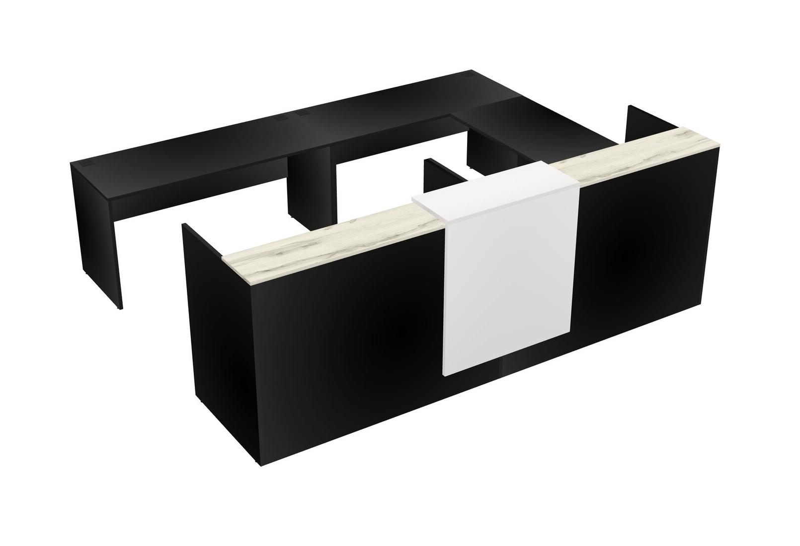 Bureau D'accueil Modulaire Partagé En U Avec Comptoir Flottant Et Tiroirs Mobiles En Bois