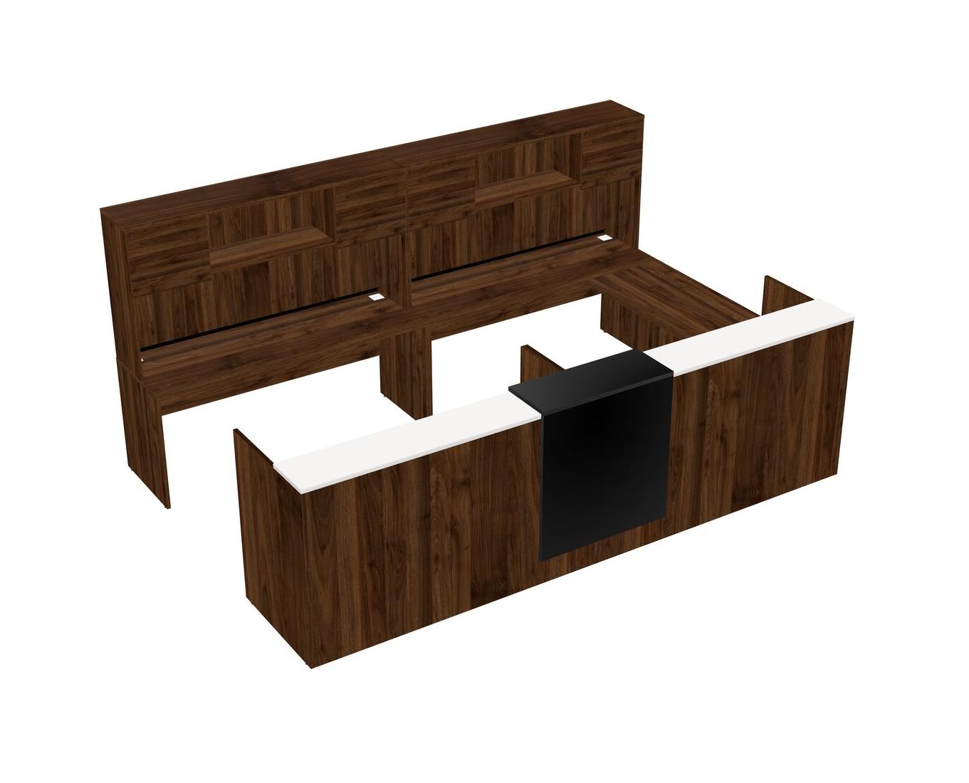 Bureau D'accueil Modulaire Partagé En U à Un Côté Avec Comptoir Flottant + Huche