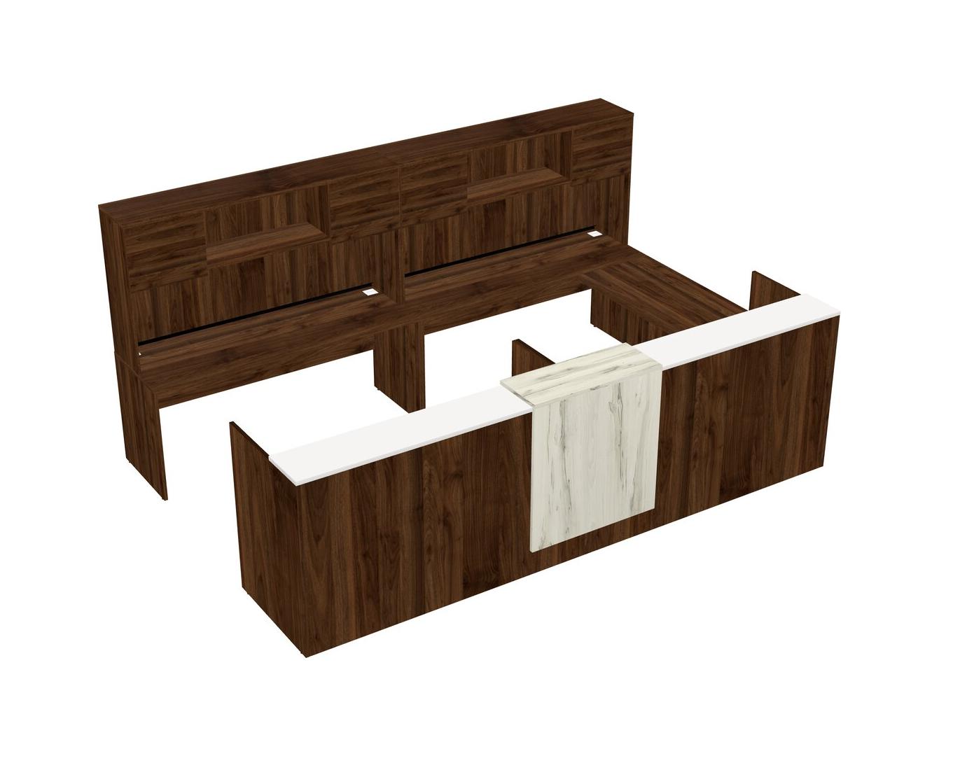 Bureau D'accueil Modulaire Partagé En U à Un Côté Avec Comptoir Flottant + Huche
