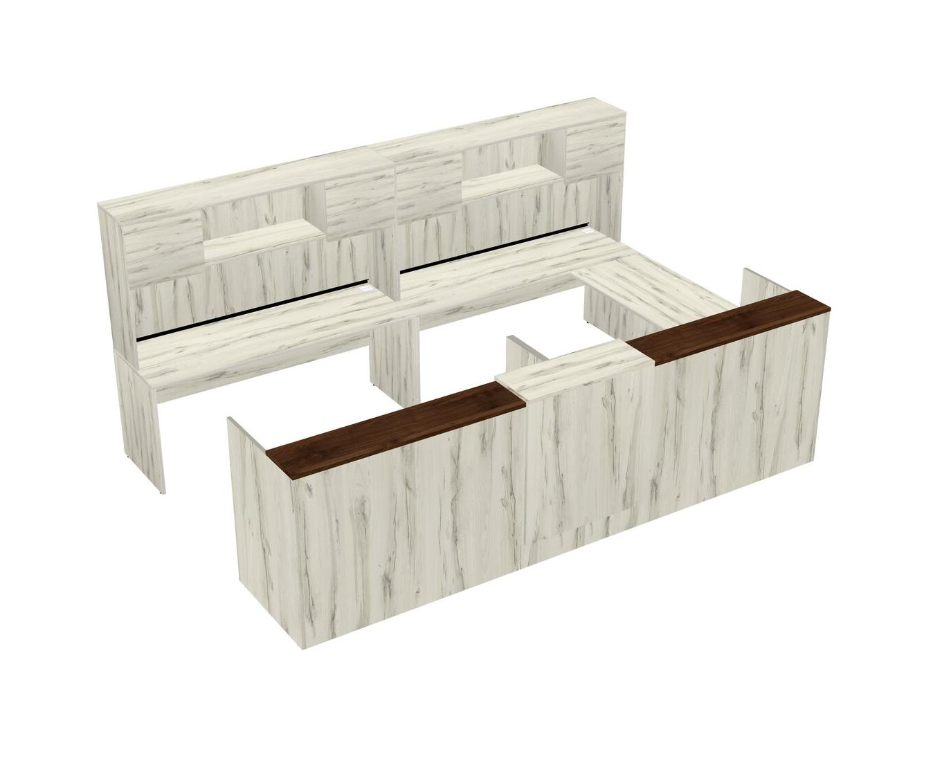 Bureau D'accueil Modulaire Partagé En U à Un Côté Avec Comptoir Flottant + Huche