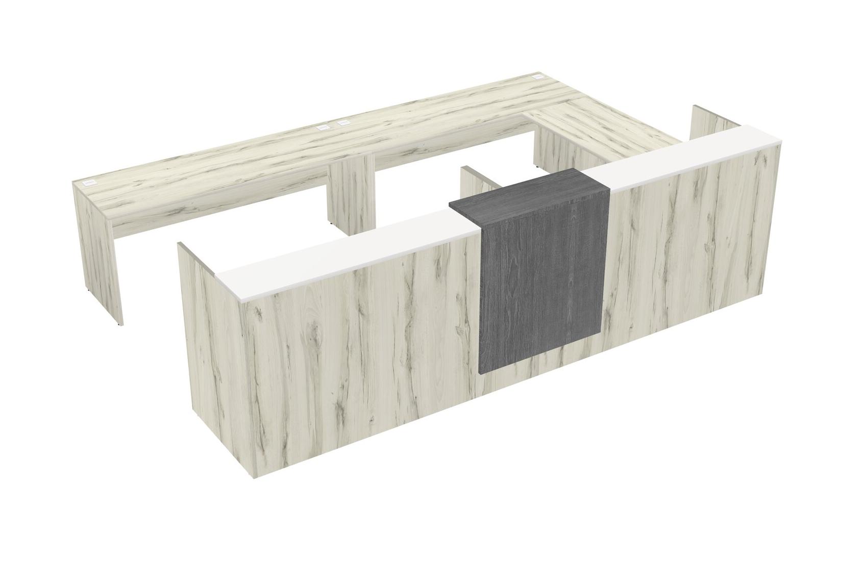 Bureau D'accueil Modulaire Partagé En U Avec Comptoir Flottant Et Tiroirs Mobiles En Bois