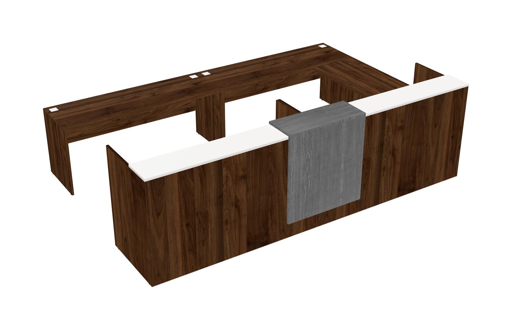 Bureau D'accueil Modulaire Partagé En U Avec Comptoir Flottant Et Tiroirs Mobiles En Bois