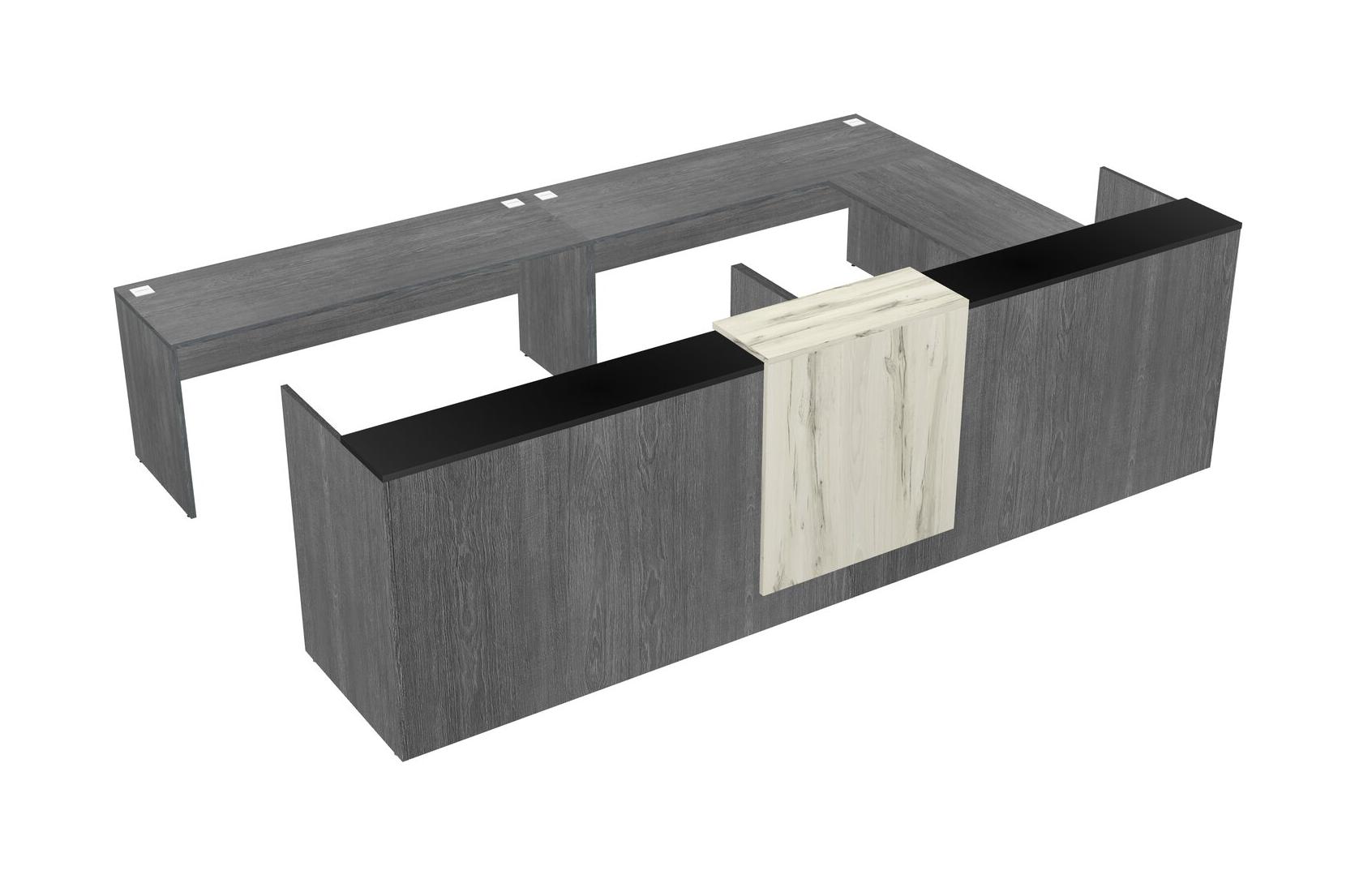 Bureau D'accueil Modulaire Partagé En U Avec Comptoir Flottant Et Tiroirs Mobiles En Bois