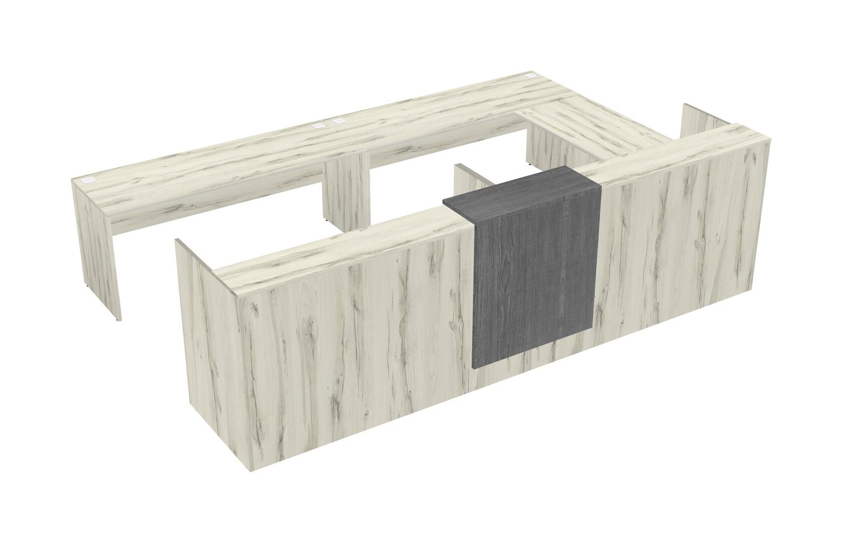 Bureau D'accueil Modulaire Partagé En U Avec Comptoir Flottant Et Tiroirs Mobiles En Bois