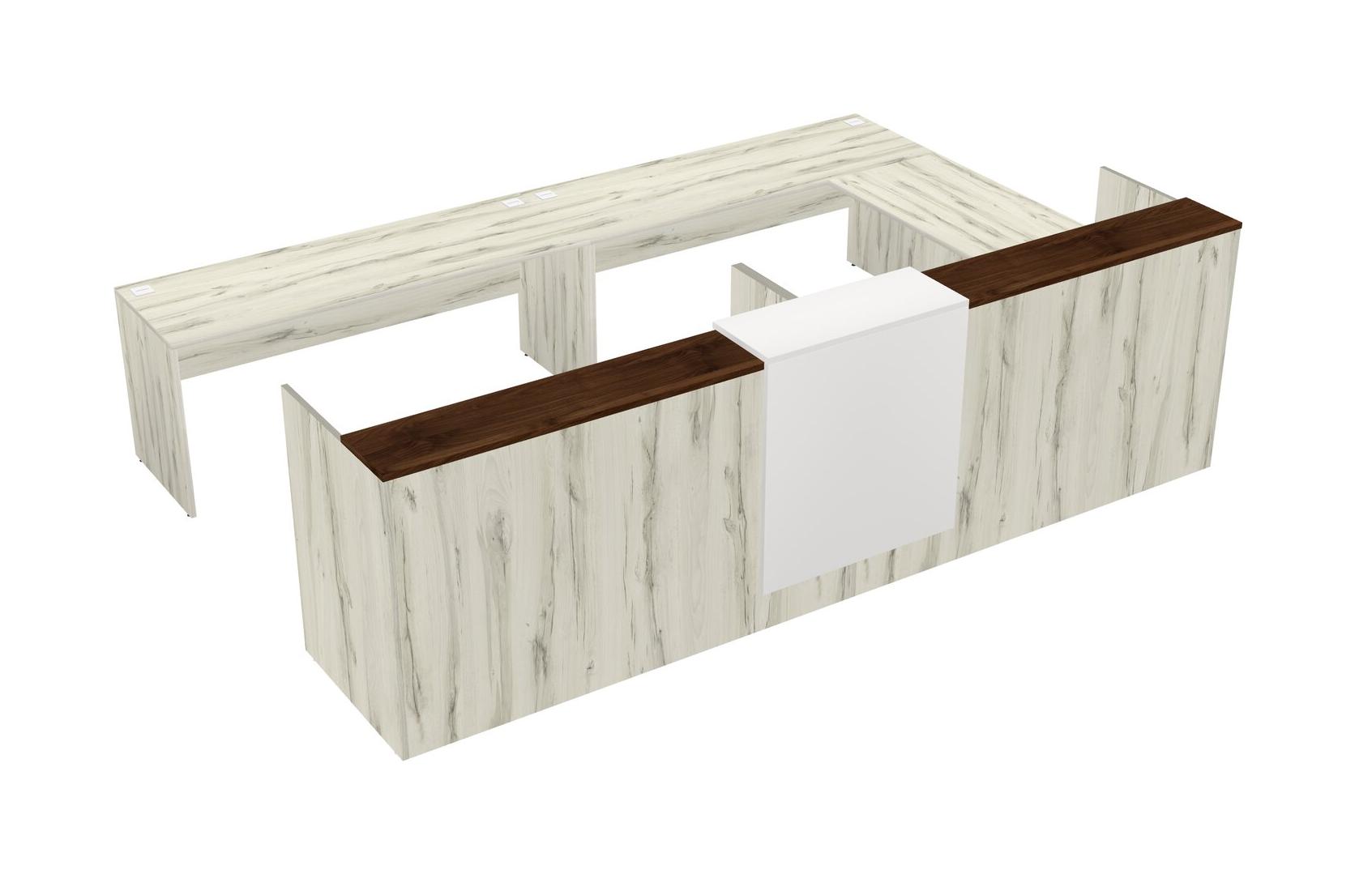 Bureau D'accueil Modulaire Partagé En U Avec Comptoir Flottant Et Tiroirs Mobiles En Bois
