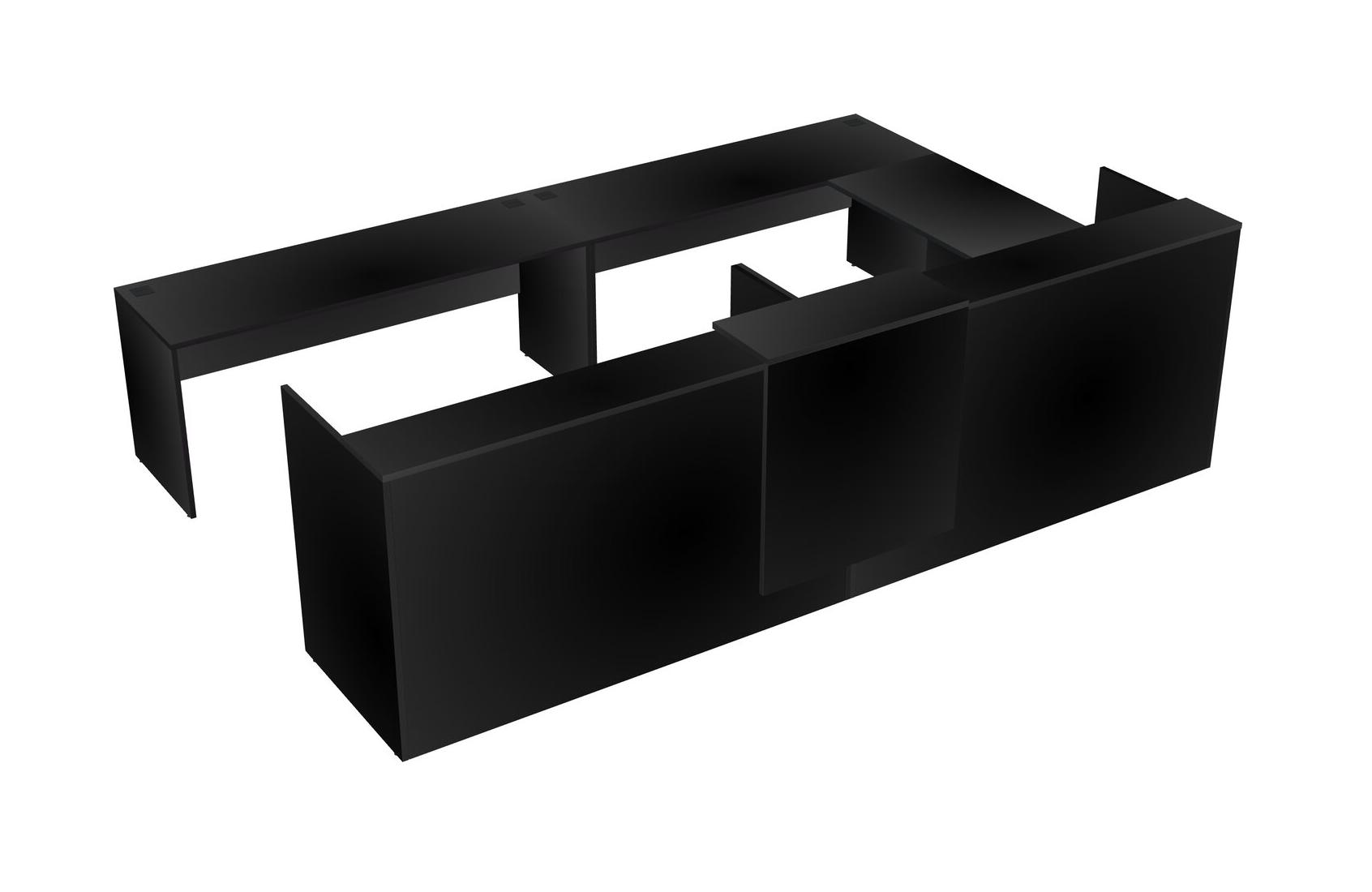 Bureau D'accueil Modulaire Partagé En U Avec Comptoir Flottant Et Tiroirs Mobiles En Bois