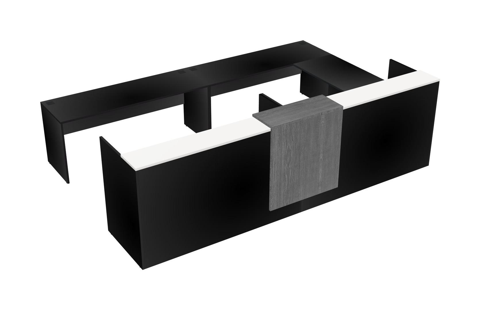 Bureau D'accueil Modulaire Partagé En U Avec Comptoir Flottant Et Tiroirs Mobiles En Bois