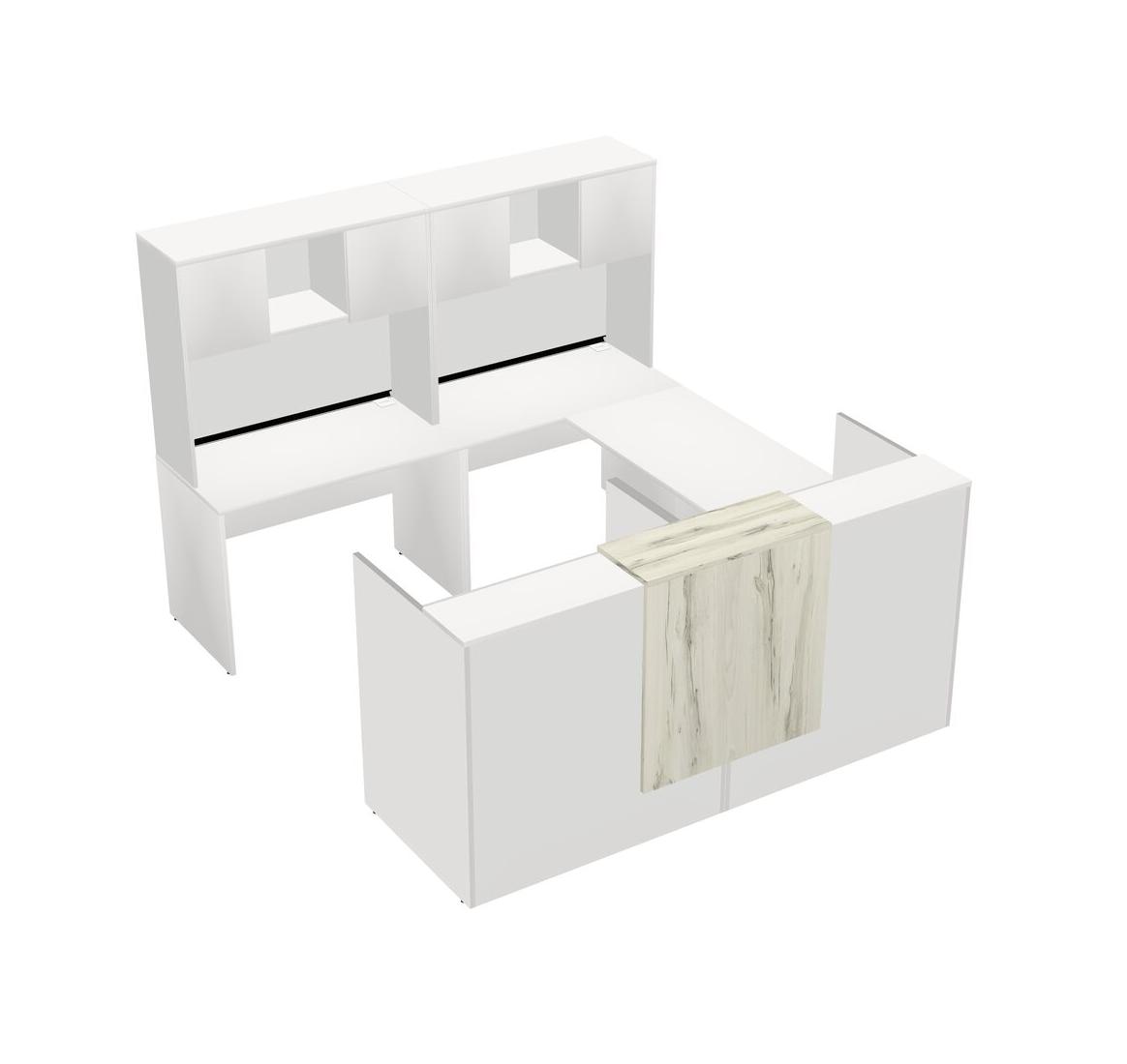 Bureau D'accueil Modulaire Partagé En U à Un Côté Avec Comptoir Flottant + Huche