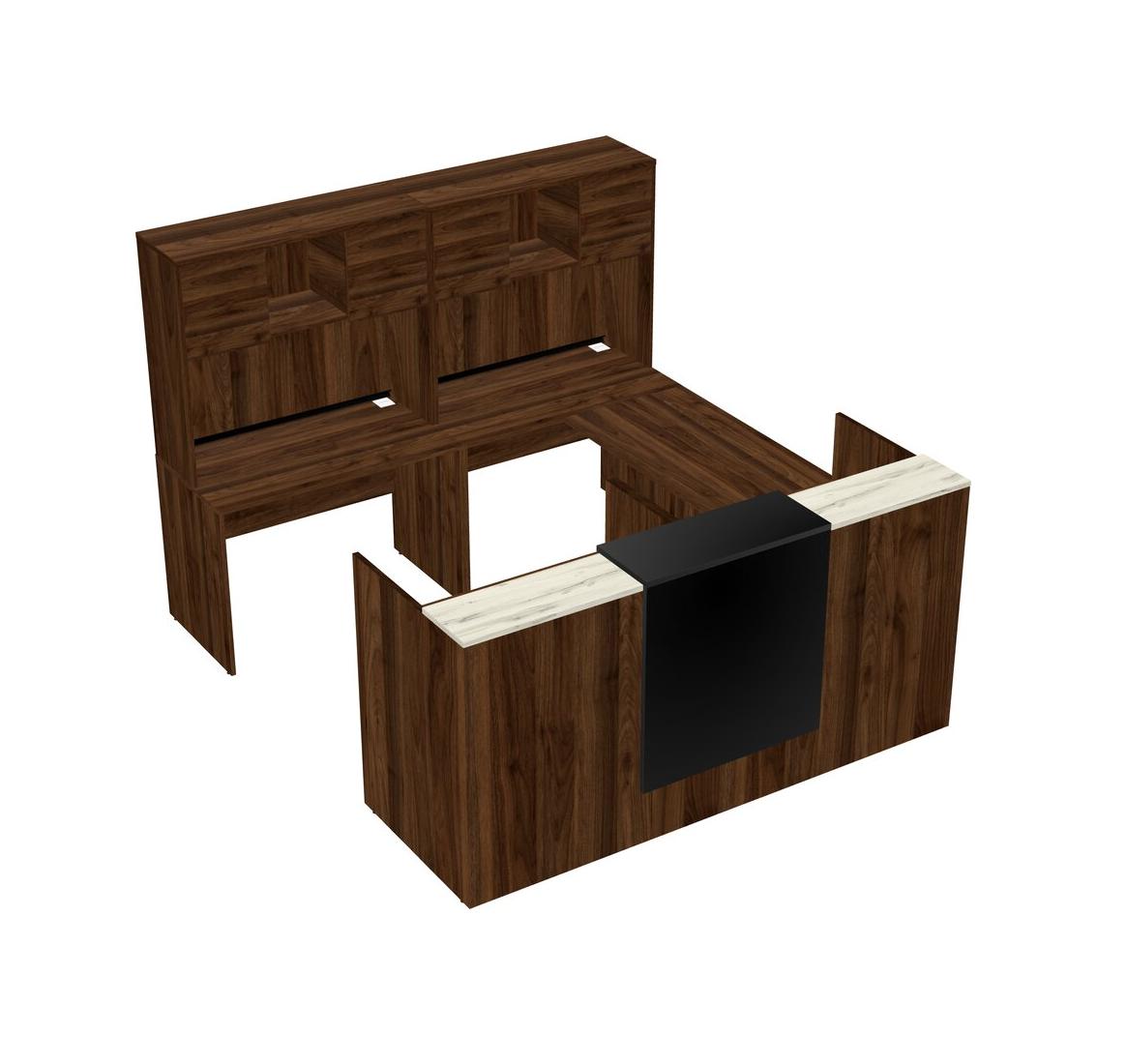 Bureau D'accueil Modulaire Partagé En U à Un Côté Avec Comptoir Flottant + Huche