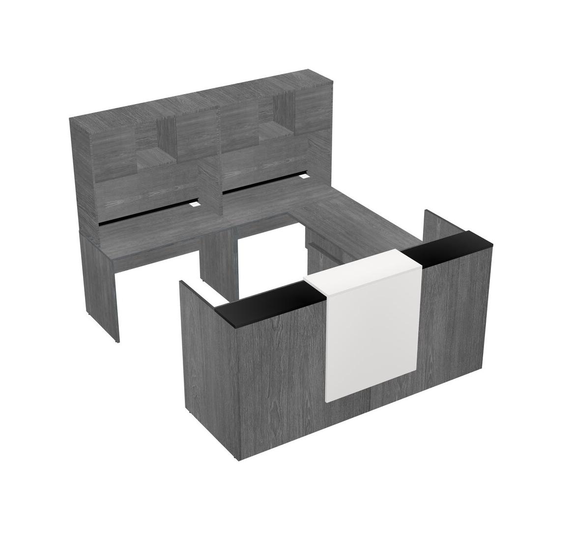 Bureau D'accueil Modulaire Partagé En U à Un Côté Avec Comptoir Flottant + Huche