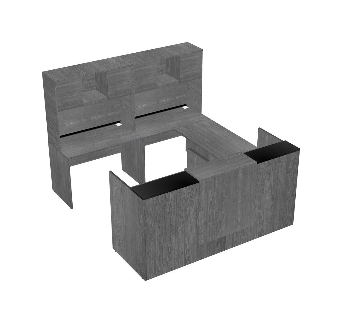Bureau D'accueil Modulaire Partagé En U à Un Côté Avec Comptoir Flottant + Huche
