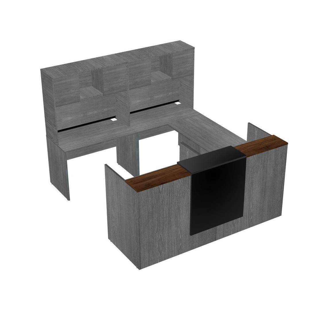 Bureau D'accueil Modulaire Partagé En U à Un Côté Avec Comptoir Flottant + Huche