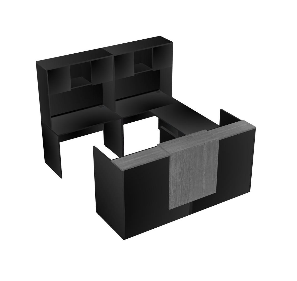 Bureau D'accueil Modulaire Partagé En U à Un Côté Avec Comptoir Flottant + Huche