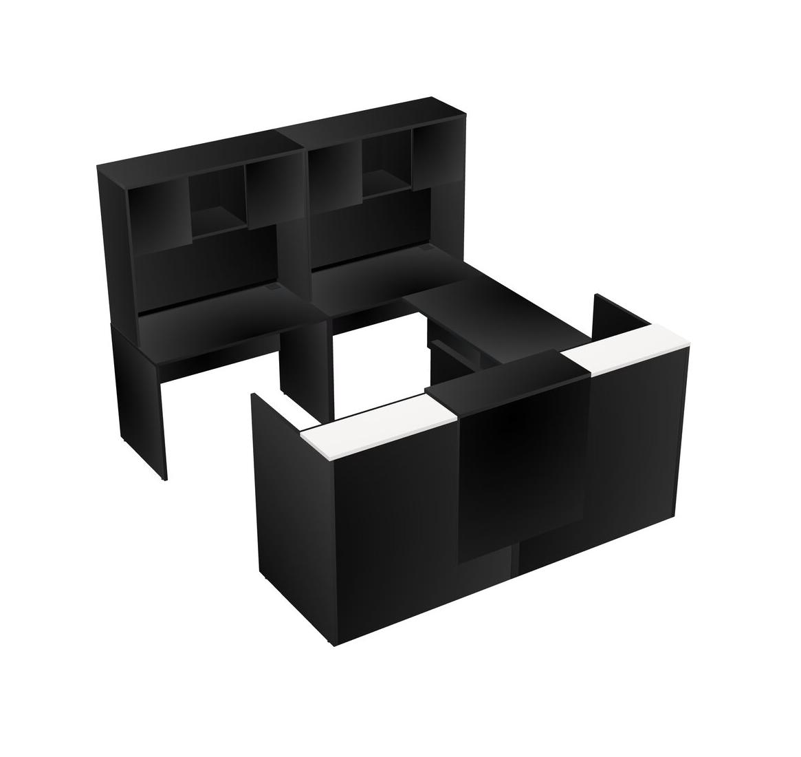 Bureau D'accueil Modulaire Partagé En U à Un Côté Avec Comptoir Flottant + Huche