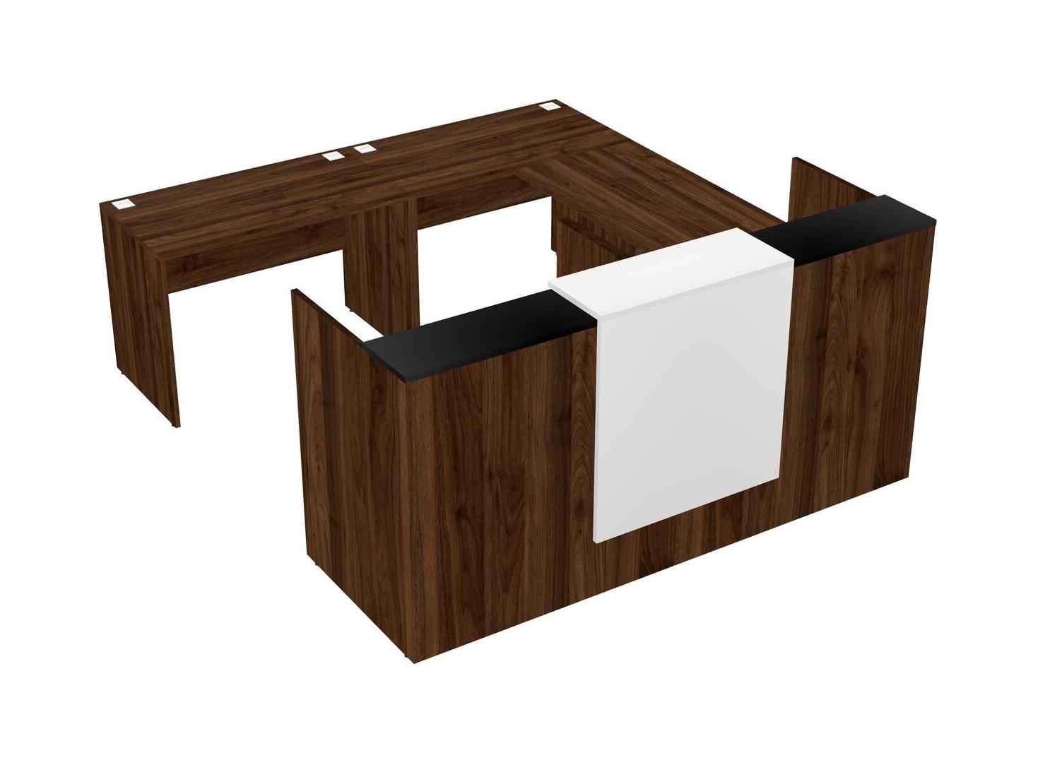 Bureau D'accueil Modulaire Partagé En U Avec Comptoir Flottant Et Tiroirs Mobiles En Bois