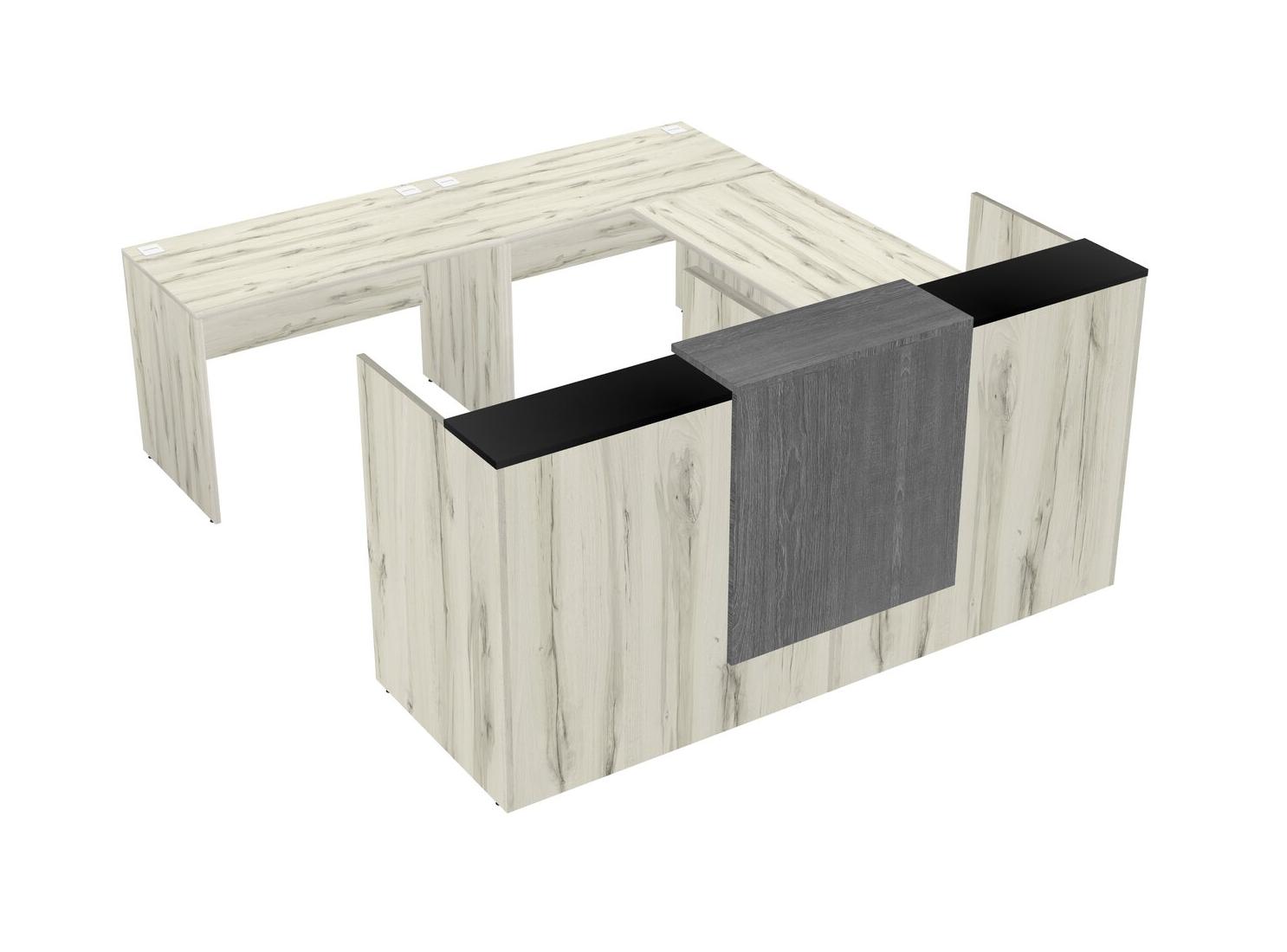 Bureau D'accueil Modulaire Partagé En U Avec Comptoir Flottant Et Tiroirs Mobiles En Bois