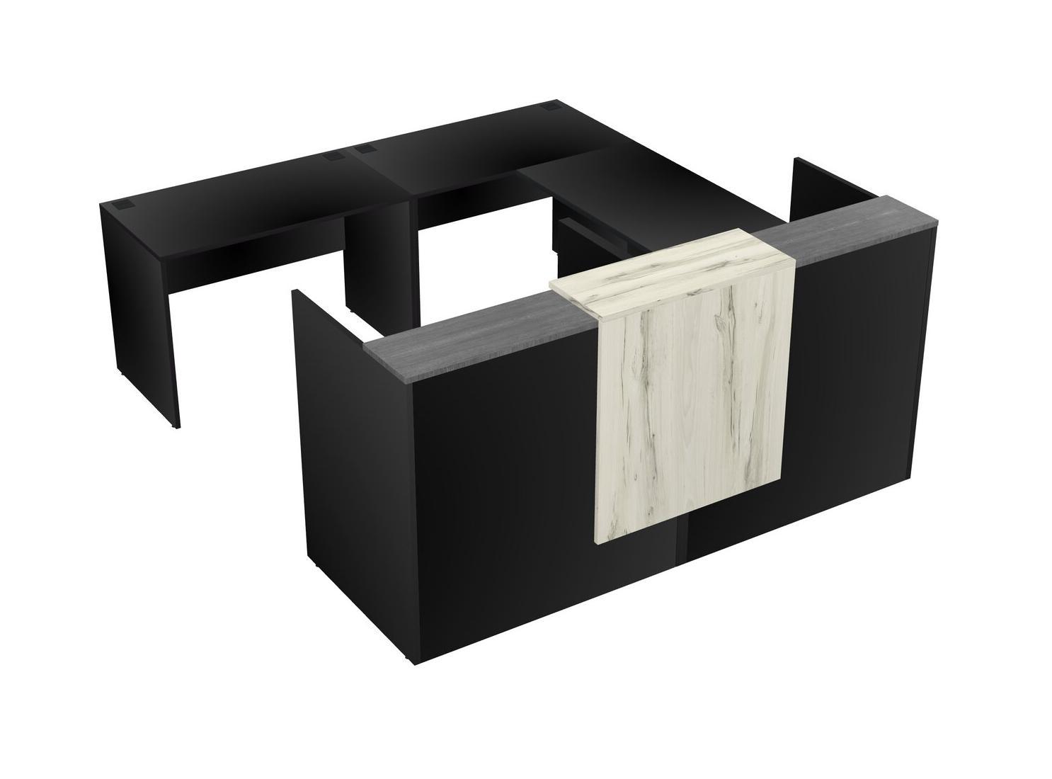 Bureau D'accueil Modulaire Partagé En U Avec Comptoir Flottant Et Tiroirs Mobiles En Bois