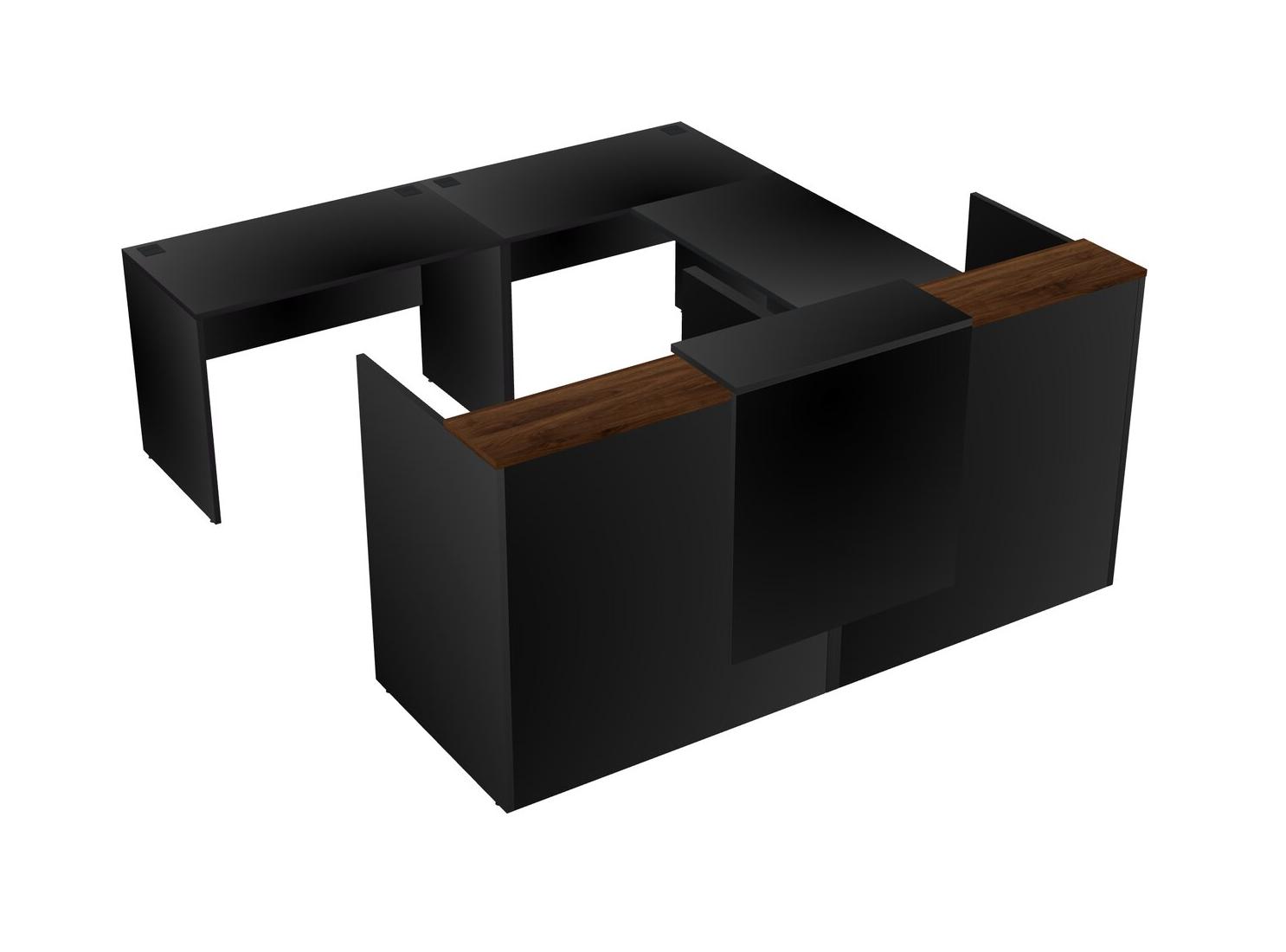 Bureau D'accueil Modulaire Partagé En U Avec Comptoir Flottant Et Tiroirs Mobiles En Bois