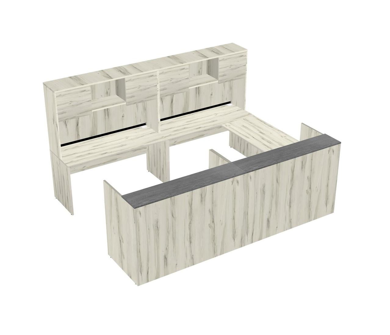 Bureau D'accueil Modulaire Partagé En U Unilatéral + Huche + Tiroirs Mobiles En Bois