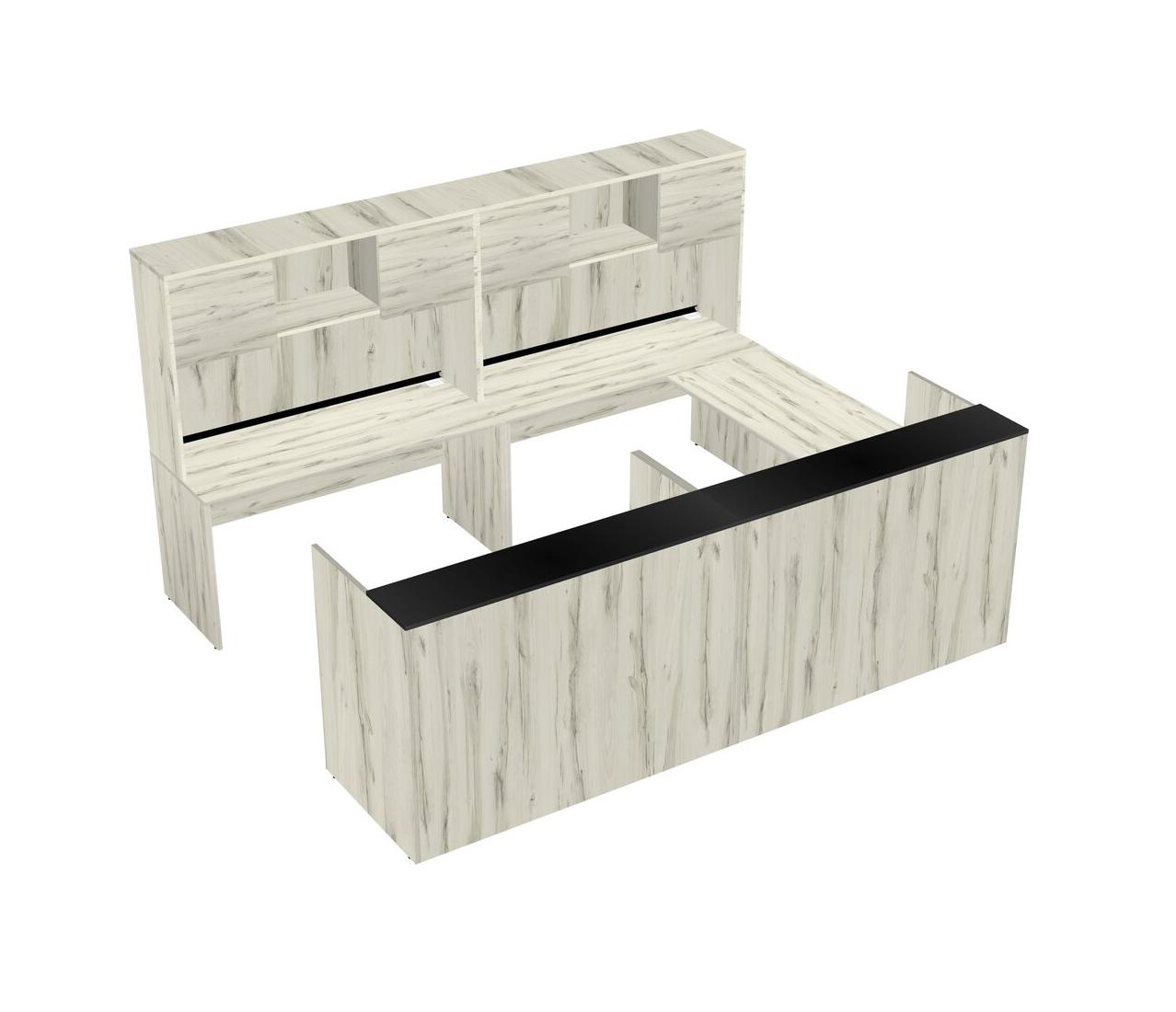 Bureau D'accueil Modulaire Partagé En U Unilatéral + Huche + Tiroirs Mobiles En Bois