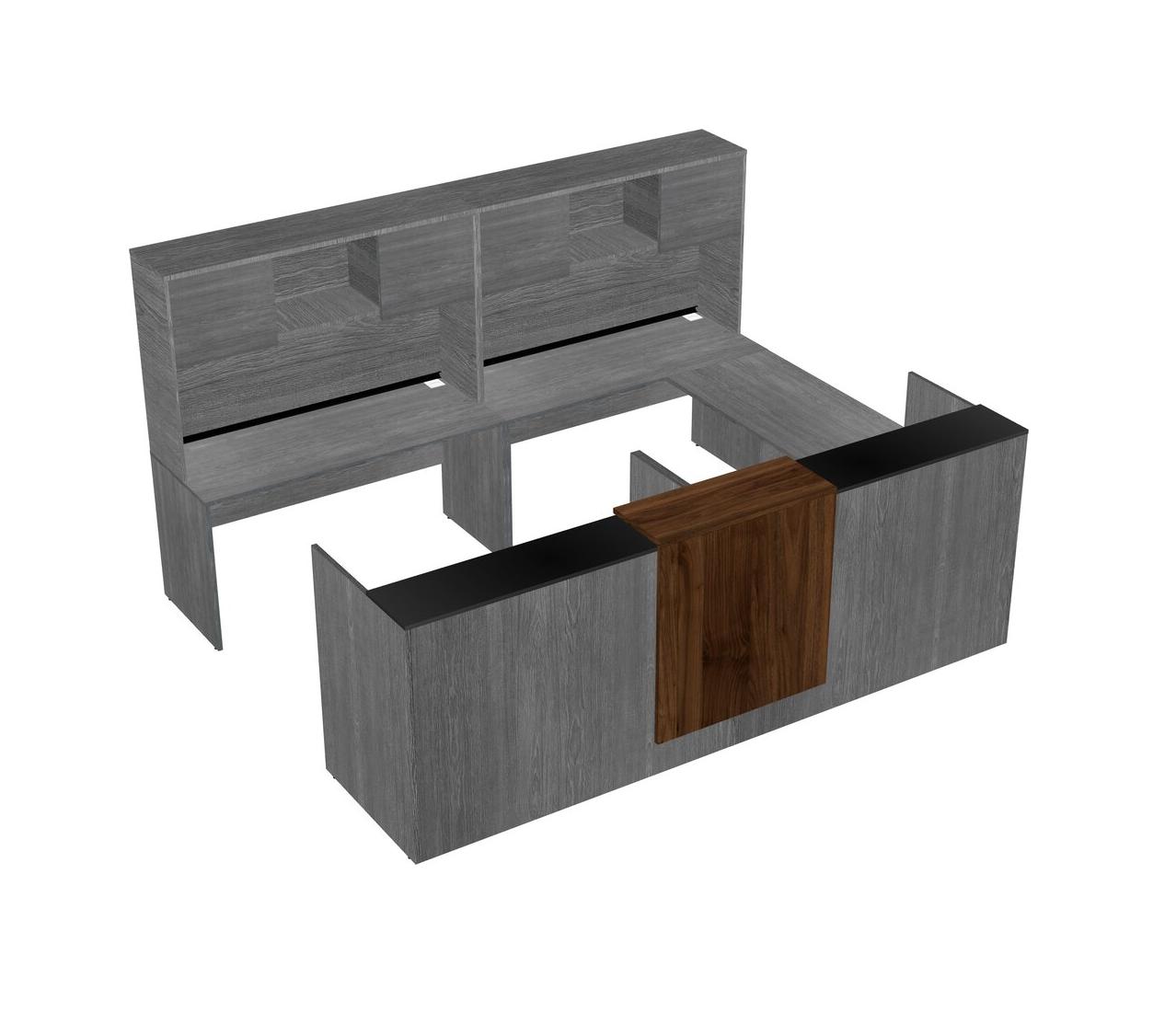Bureau D'accueil Modulaire Partagé En U Avec Comptoir Flottant + Huche + Tiroirs Mobiles En Bois