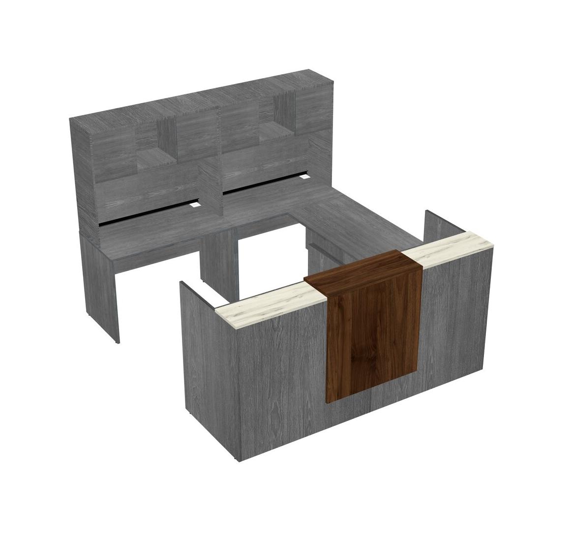 Bureau D'accueil Modulaire Partagé En U Avec Comptoir Flottant + Huche + Tiroirs Mobiles En Bois
