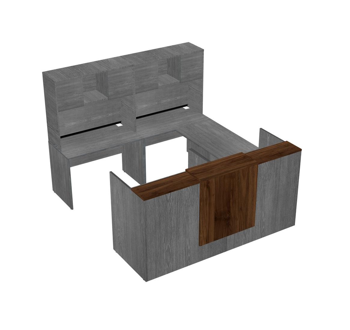 Bureau D'accueil Modulaire Partagé En U Avec Comptoir Flottant + Huche + Tiroirs Mobiles En Bois