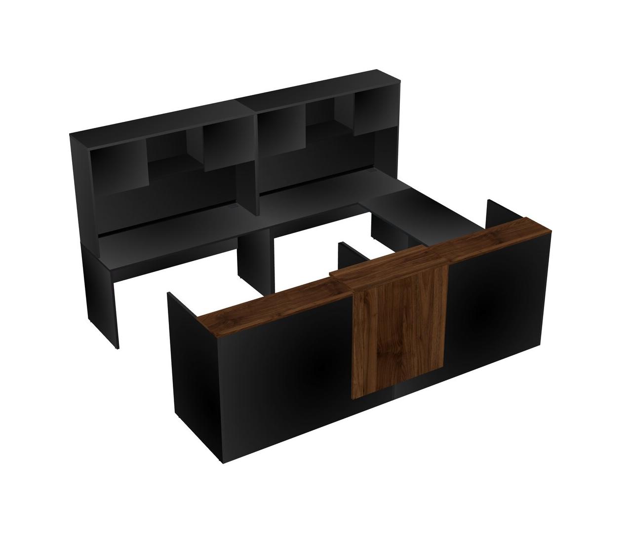 Bureau D'accueil Modulaire Partagé En U Avec Comptoir Flottant + Huche + Tiroirs Mobiles En Bois