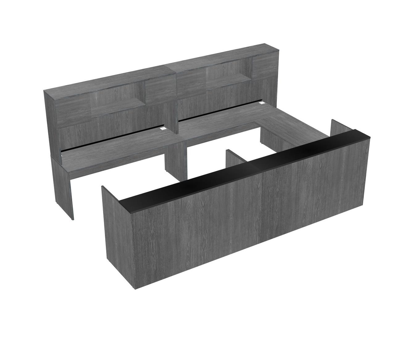 Bureau D'accueil Modulaire Partagé En U Unilatéral + Huche + Tiroirs Mobiles En Bois