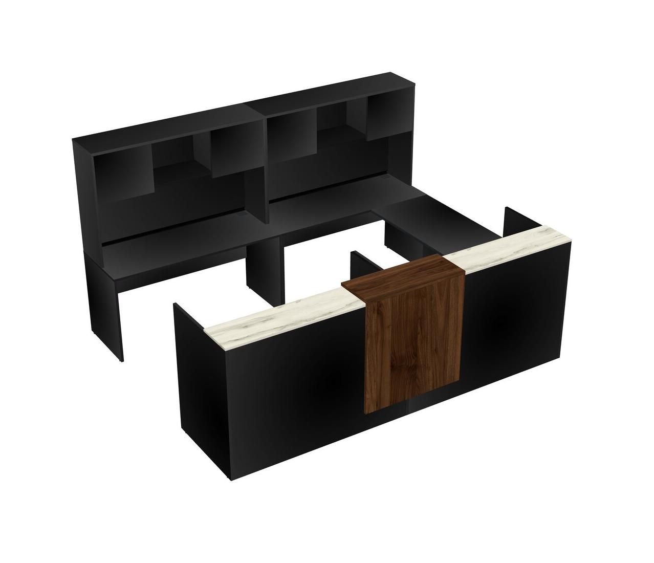 Bureau D'accueil Modulaire Partagé En U à Un Côté Avec Comptoir Flottant + Huche