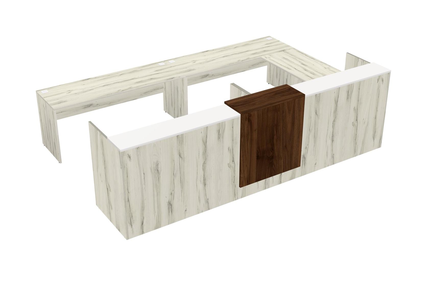 Bureau D'accueil Modulaire Partagé En U Avec Comptoir Flottant Et Tiroirs Mobiles En Bois