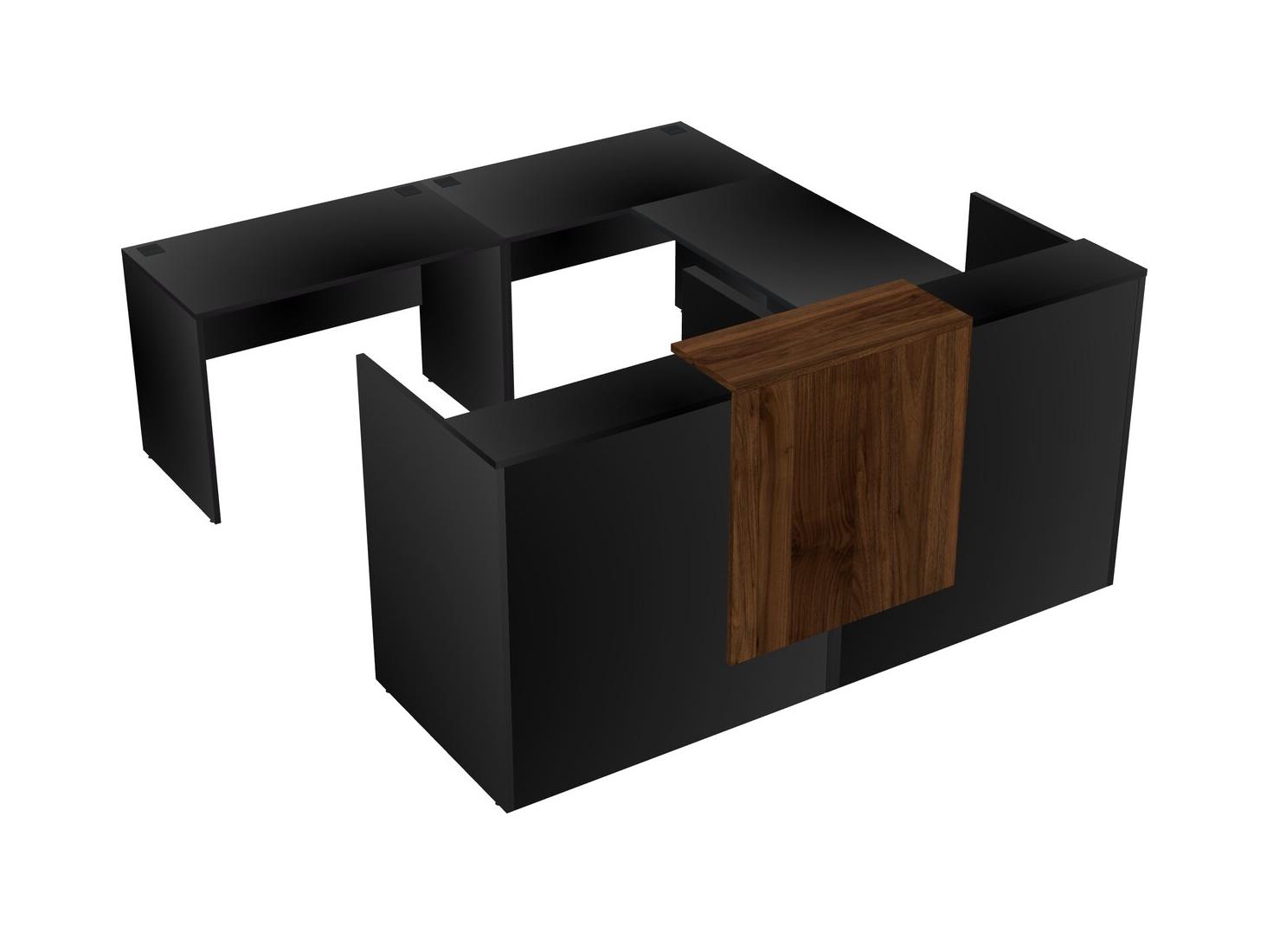 Bureau D'accueil Modulaire Partagé En U Avec Comptoir Flottant Et Tiroirs Mobiles En Bois