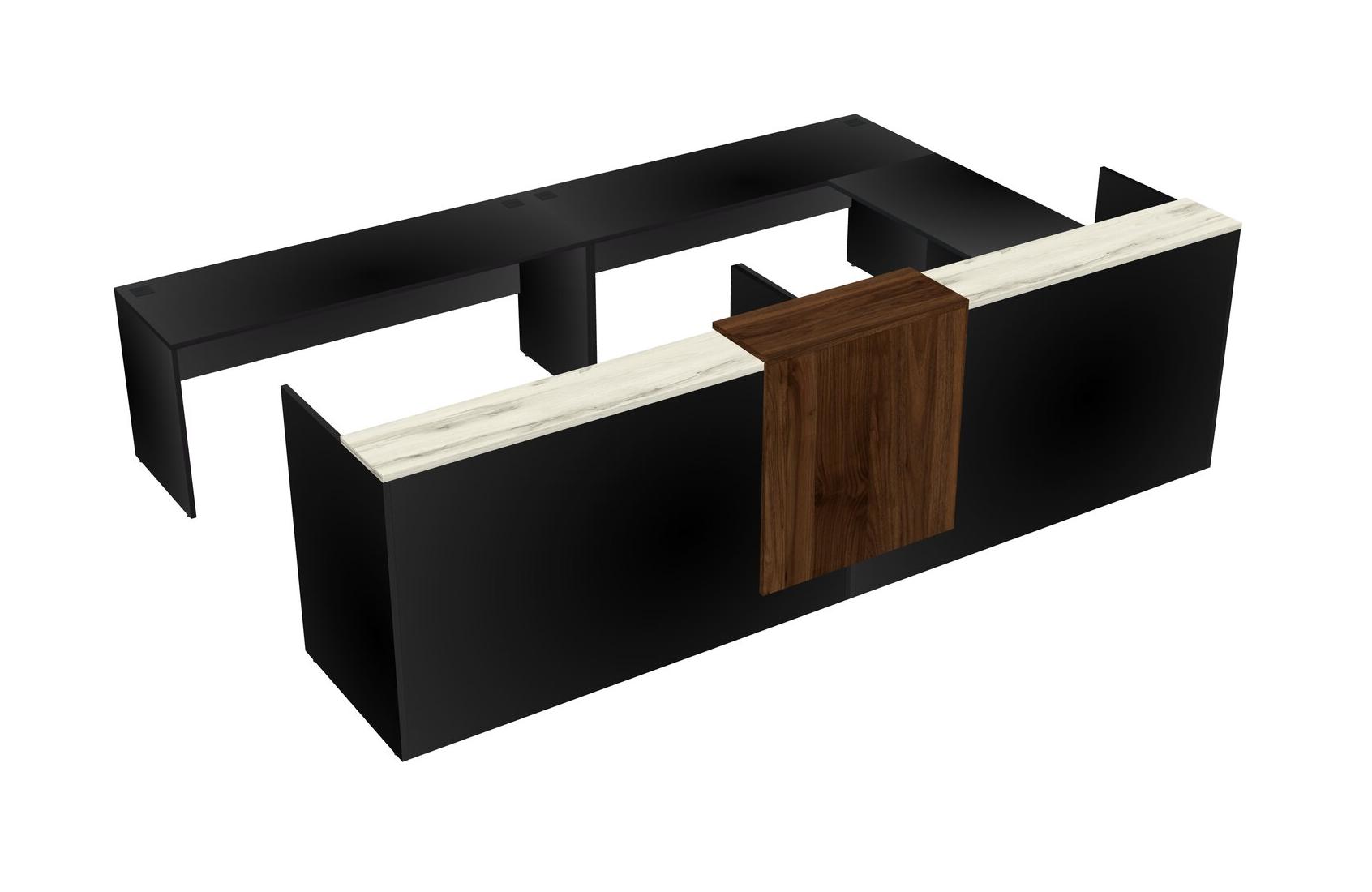 Bureau D'accueil Modulaire Partagé En U Avec Comptoir Flottant Et Tiroirs Mobiles En Bois