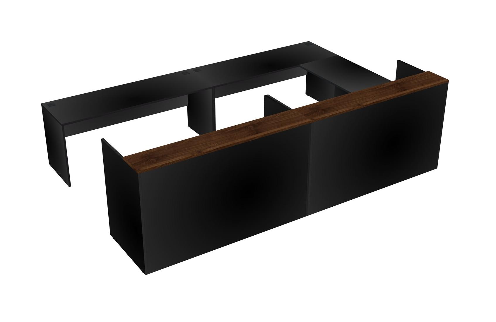 Bureau D'accueil Modulaire Partagé En U Unilatéral + Tiroirs Mobiles En Bois