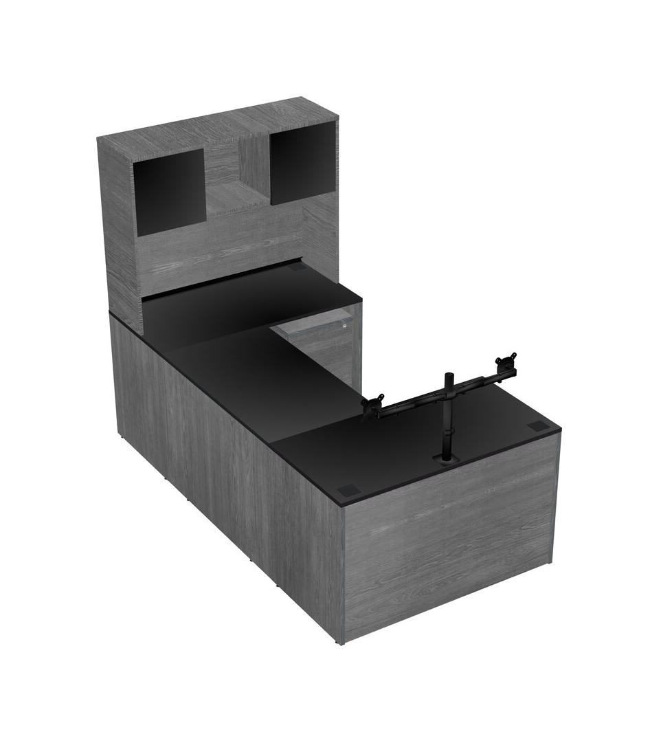 Bureau En U, Crédence, Tiroirs Mobiles En Bois, Clapier, Bras Pour écran (bras Doubles)