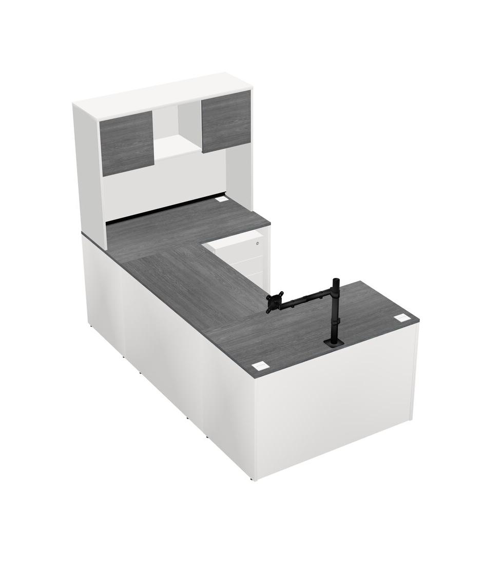 Bureau En U, Crédence, Tiroirs Mobiles En Bois, Clapier, Bras D'écran (bras Simple)