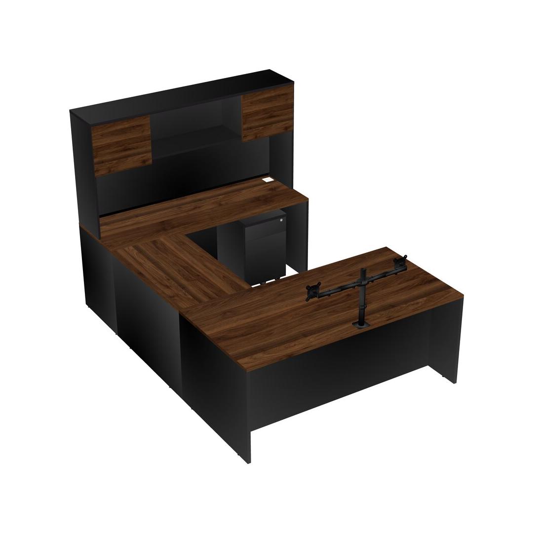 Bureau En U, Crédence, Tiroirs Mobiles En Bois, Clapier, Bras Pour écran (bras Doubles)