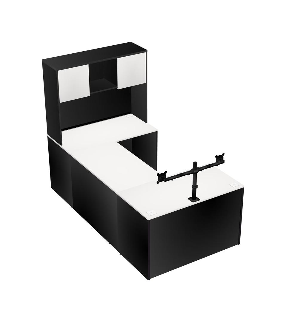 Bureau En U, Crédence, Bureau + Huche + Bras Pour écran (bras Doubles)