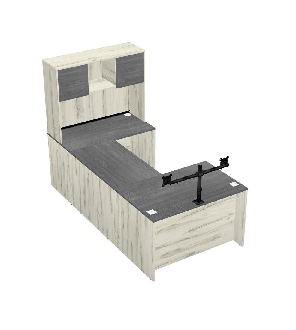 Bureau En U, Crédence, Bureau + Huche + Bras Pour écran (bras Doubles)