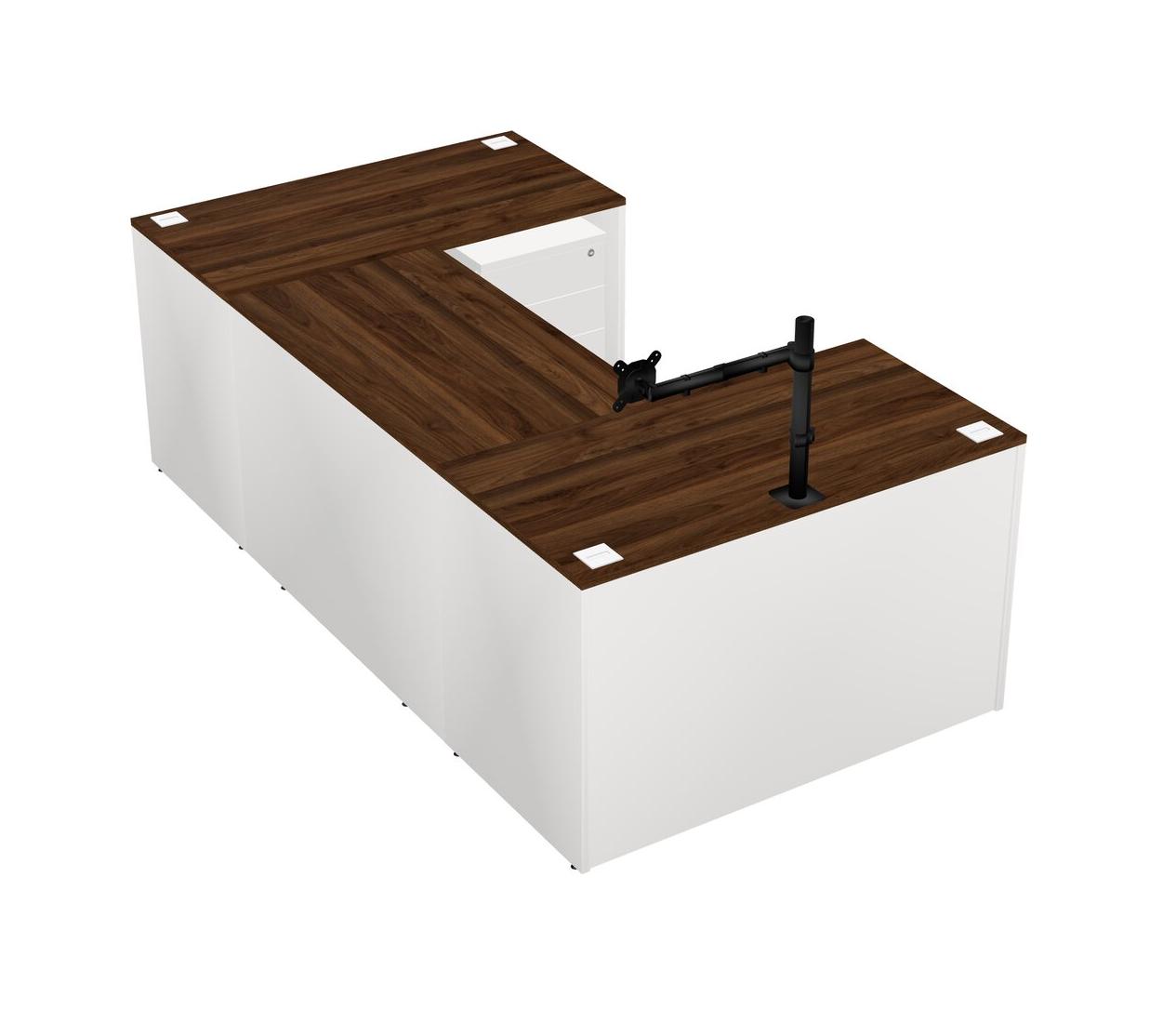 Bureau En U, Crédence, Tiroirs Mobiles En Bois, Bras D'écran (bras Simple)