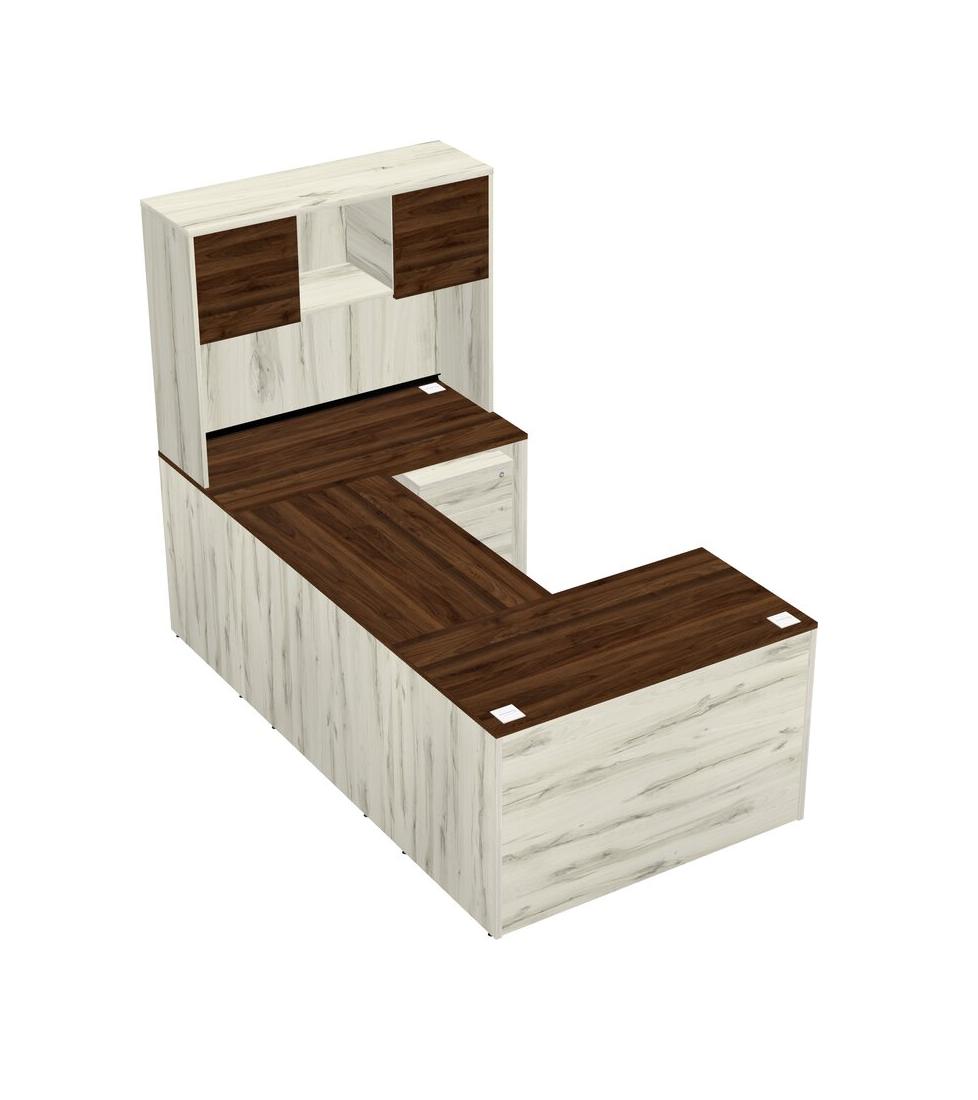Bureau En U, Crédence, Tiroirs Mobiles En Bois Et Clapier