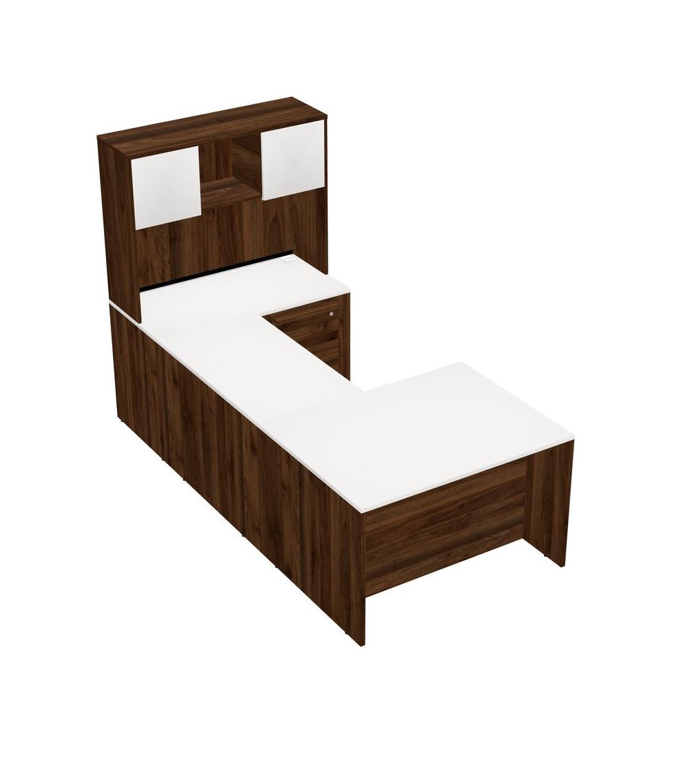 Bureau En U, Crédence, Tiroirs Mobiles En Bois Et Clapier