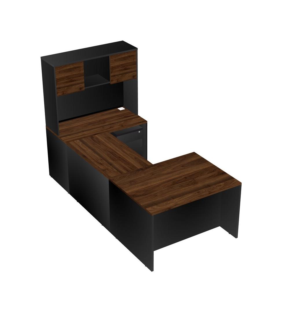 Bureau En U, Crédence, Tiroirs Mobiles En Bois Et Clapier