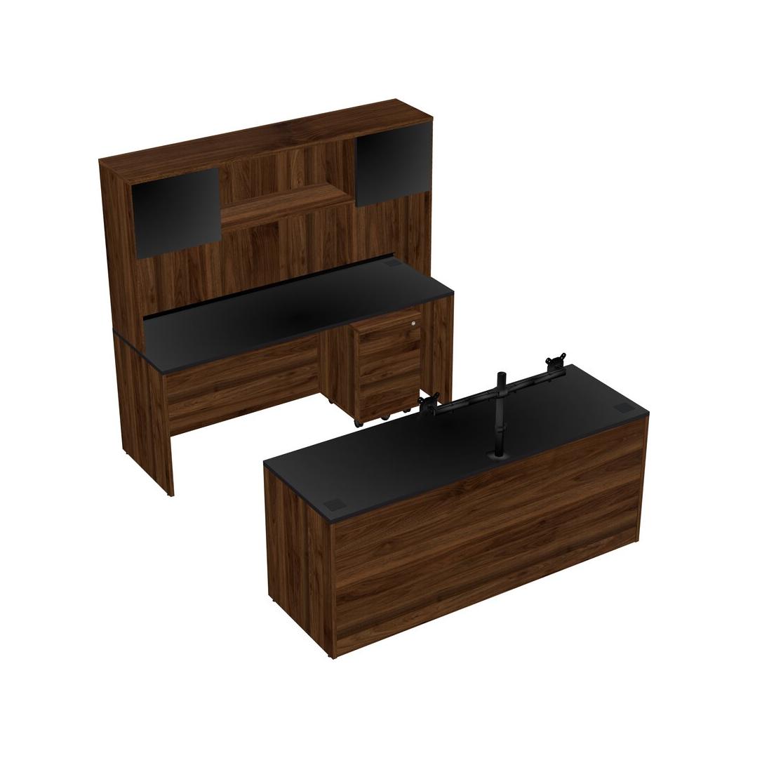 Bureau Parallèle, Bureau Crédence, Tiroirs Mobiles En Bois, Clapier, Bras Pour écran (bras Doubles)